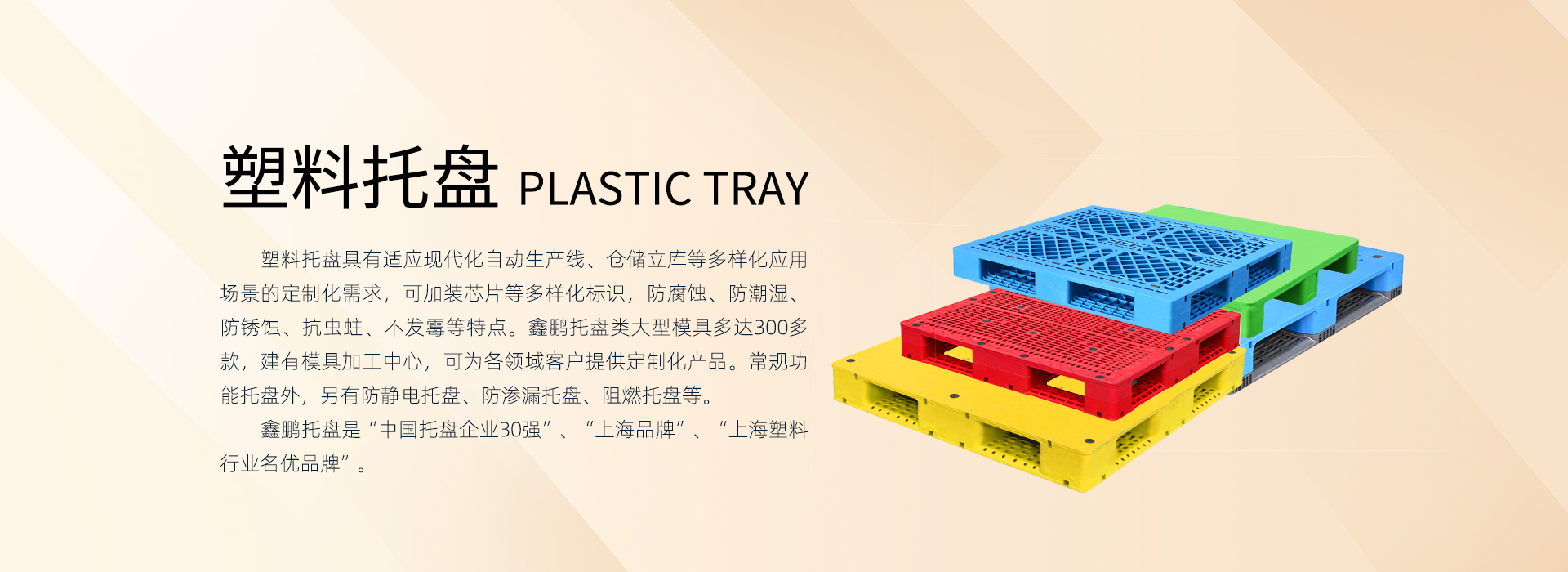 上海鑫鵬塑料制品有限公司作為集團(tuán)最早成立的企業(yè),是上海市高新技術(shù)企業(yè),上海市專精特新企業(yè)、上海市小巨人先進(jìn)企業(yè)。公司配有專業(yè)的高分子材料和產(chǎn)品研發(fā)技術(shù)團(tuán)隊(duì),擁有7項(xiàng)發(fā)明專利,66項(xiàng)實(shí)用新型專利;完善的ISO9001質(zhì)量管理體系、ISO14001環(huán)境管理體系及ISO45001職業(yè)健康與安全管理體系為公司及客戶提供了有力的質(zhì)量保證與安全保障。30多年行業(yè)積累,現(xiàn)集團(tuán)公司整體擁有90多臺(tái)160噸-4000噸注塑設(shè)備,建有模具生產(chǎn)制造中心、原材料和產(chǎn)品測(cè)試中心,配備全套先進(jìn)的產(chǎn)品檢驗(yàn)儀器及各種輔助設(shè)備。年產(chǎn)塑料制品1800萬(wàn)件,改性塑料新材料15萬(wàn)噸。我們的產(chǎn)品廣泛應(yīng)用于食品飲料、物流倉(cāng)儲(chǔ)、生鮮蔬果、煙酒、電商、化工、醫(yī)藥、紙業(yè)、汽車、環(huán)衛(wèi)等行業(yè)領(lǐng)域,可根據(jù)不同行業(yè)客戶應(yīng)用場(chǎng)景定制化產(chǎn)品。行業(yè)經(jīng)驗(yàn)